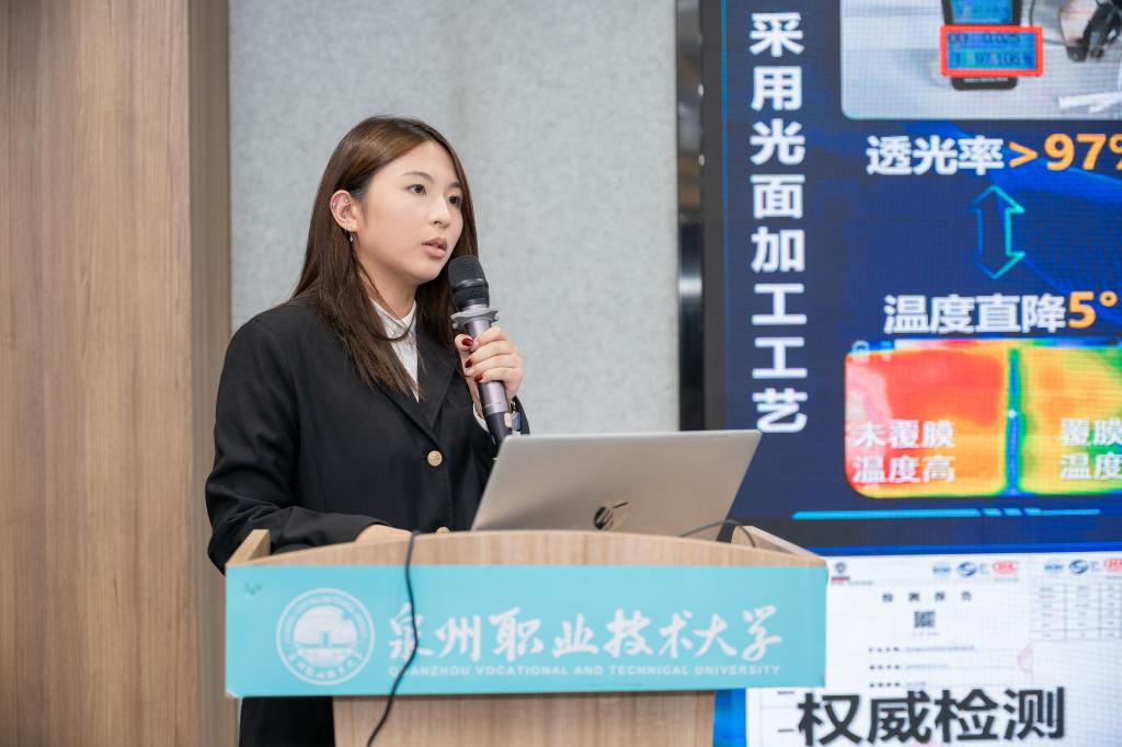 座谈会最后,工学院2023级机械设计制造及自动化专业的优秀学生代表林煌蕾同学分享了她的升学经历,并现场路演了她在校期间获得24年福建省大学生创新大赛银奖的比赛项目“零水晶洁”,为安职学弟学妹们介绍了机械设计制造及自动化专业的应用场景。