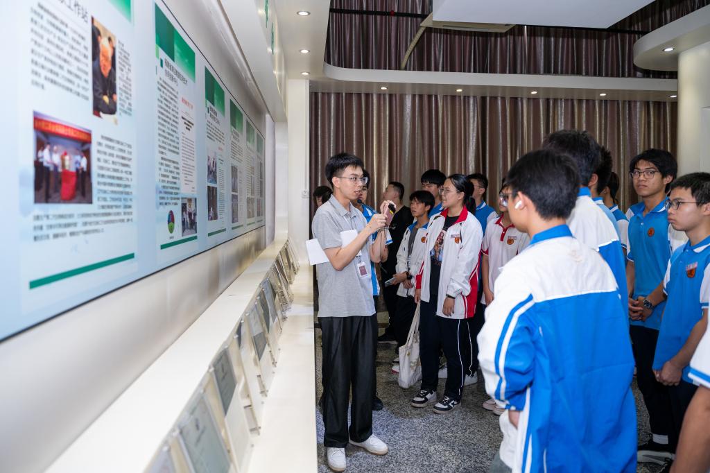 ▲ 招生办王汉池老师带领学生们参观校园沙盘、校史馆