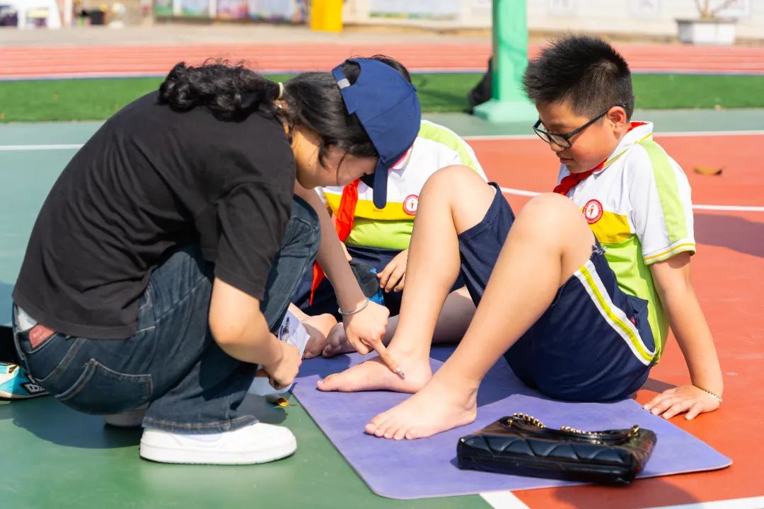暖阳下,一张张瑜伽垫铺在小学操场,小学生脱下鞋轮流站在垫子上。两天内,泉大休闲体育专业师生像侦探一样,以手为尺、以眼测量、以笔标识,检查出小学生的体态问题。尽早发现他们体态和脊柱问题,进行干预治疗,让孩子们的身心健康成长。