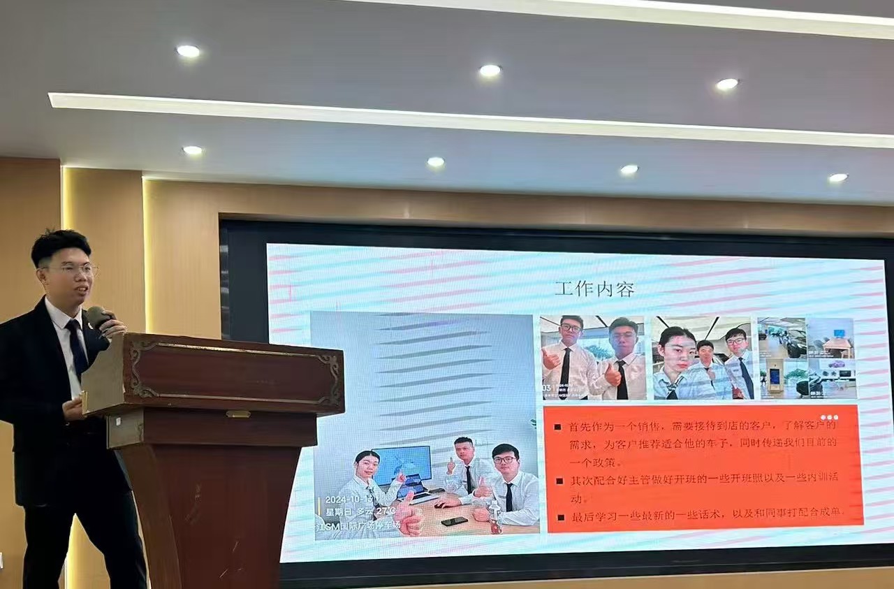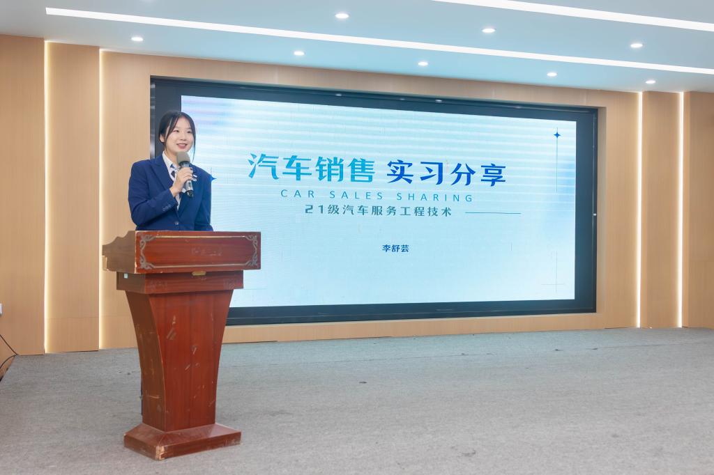 我校邀请2021级汽车服务工程技术专业的李舒芸和谢黄成两位优秀实习生作经验分享,他们分享了自己在校期间的学习经历和校外工作经历,告诉大家要珍惜校园的时光,通过在校期间积极参与实践活动,提升自己的专业能力,提高社交能力。
