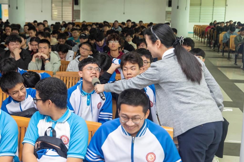 蔡金佩介绍工学院汽车专业的前身、发展历史、历届校友的就业成效以及新能源方向的就业前景,希望两所学校能够携手共进,深入合作共建,促进未来人才梯队的培养。同时他鼓励同学们能够充分借助“中本贯通”这个试点项目资源,在中职阶段扎实自己的理论基础,丰富自己的实践经验,顺利通过转段考试,成为真正的泉大人!