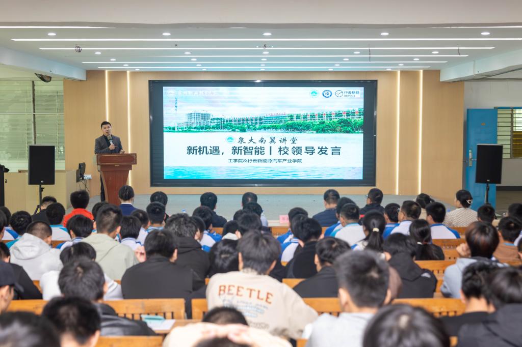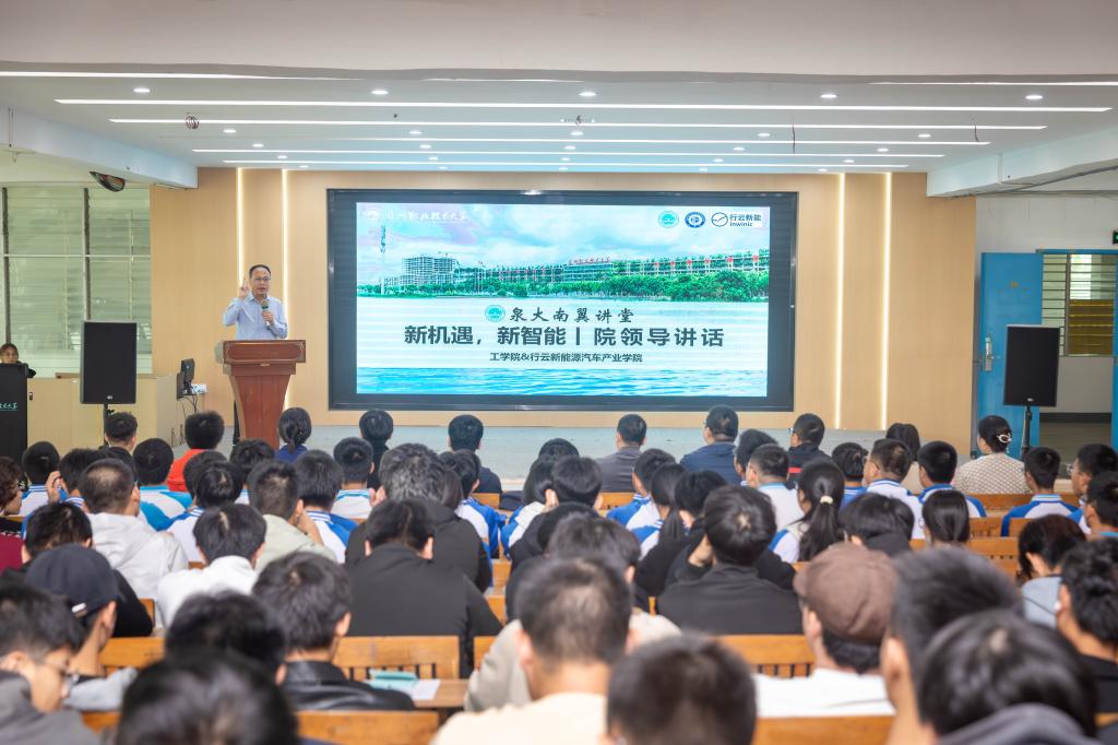 11月20日,泉州职业技术大学迎来了数十位准泉大人,他们是晋江华侨职业中专学校2024级新能源汽车运用与维修专业新生,是中本“3+4”贯通人才培养项目中3年后将就读我校新能源汽车工程技术专业的学生。我校为这些准泉大人举办“汽车电动化、智能化发展下的新机遇”主题讲座,并邀请优秀学长学姐分享学习、工作经验。