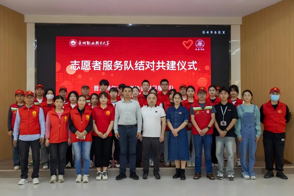 4月28日上午,泉州职业技术大学拾德书院志愿者服务大队与晋江青年志愿者协会旭日服务队在中国伞都产业馆三楼会议室举行结对共建签约仪式。晋江青年志愿者协会会长张振限,泉州职业技术大学导师林逾凡,晋江青年志愿者协会一群人文化志愿服务总队队长蔡幼玲、旭日服务队队长黄朝阳,以及泉州职业技术大学拾德书院党总支书记王秋玲、志愿者服务大队等30余名志愿者共同见证这一重要时刻。