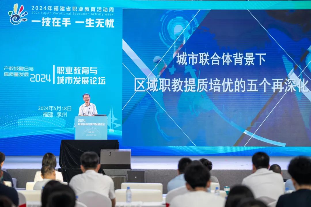 庄灿霞副主席致辞表示,泉州历来高度重视职业教育,将职业教育摆在教育改革创新和经济社会发展中的突出位置。在省教育厅和各省直部门的指导支持下,泉州市职业教育服务区域经济社会发展能力得到显著提升。每年面向社会开展各类职业技能培训超25万人次,技术交易合同成交数累计超1200项、成交额近1.5亿元,为泉州乃至福建经济社会发展和产业转型升级提供强有力的人才支持、智力支撑。泉州将借力全省职教活动周的东风,深化推进国家产教融合试点城市建设,持续在内涵建设、改革创新、融入融合、主动服务上下功夫,培养更多高素质技能人才,助力全省职业教育高质量发展。