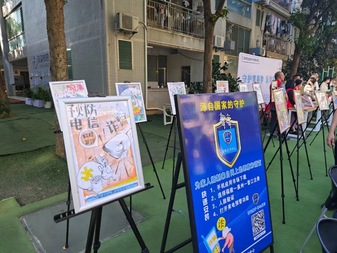 活动现场,展示了同学们手绘的反诈宣传画。同学们将自己对反诈的理解与创意融入画中,用色彩和线条传递出反诈的重要性。