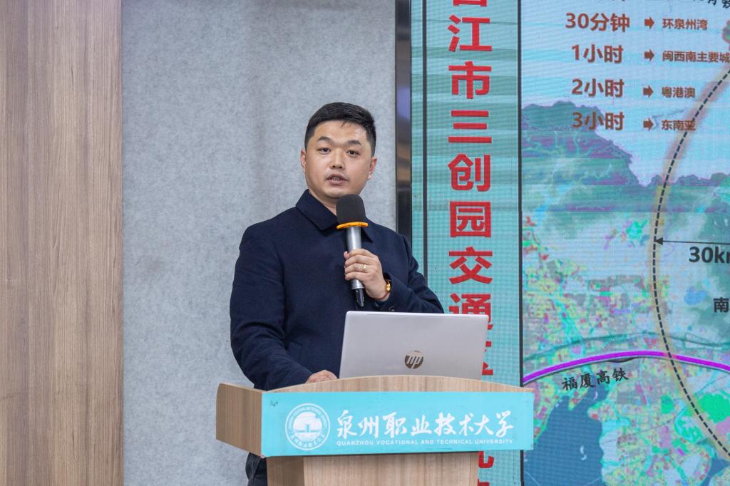 晋江市委组织部人才工作科副科长刘静、泉州市高教发展中心王丹阳、赛创未来(福建)科技服务有限公司总经理助理马振军,我校副校长张建军、教务处副处长周燕妮、教务处就业中心主任陈丹花等相关单位工作人员出席活动。