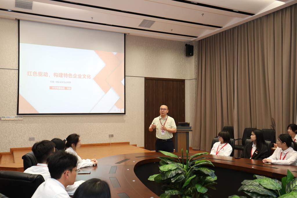在冯强的带领下,同学们还参观了华宇集团企业展厅、党建展馆、“党建+”邻里中心等,了解企业发展情况、华宇“经ZHI”党建品牌内涵以及华宇集团在营造温馨和谐企业环境方面的特色做法,共同解码华宇党建密码——“15448”(1个目标、5个经ZHI、4个特色,4点成效和8大启发)。