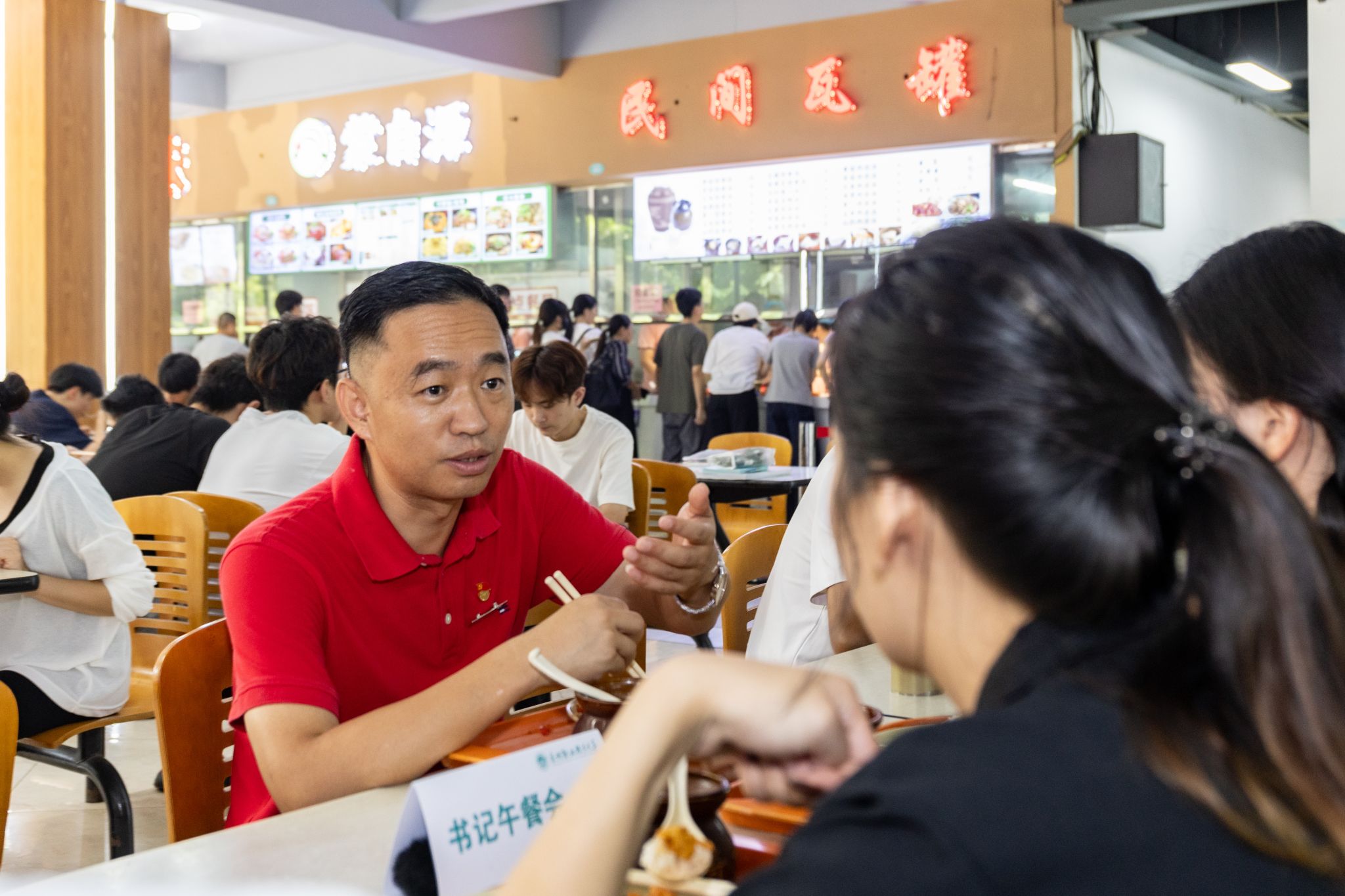 实地走访后,校领导、老师与学生代表们在壹号食堂共进午餐。轻松的餐叙氛围中,同学们围绕课程设置、学业发展、校园文化、后勤服务保障、基础设施建设等议题踊跃发言。师生亲切交流,其乐融融。