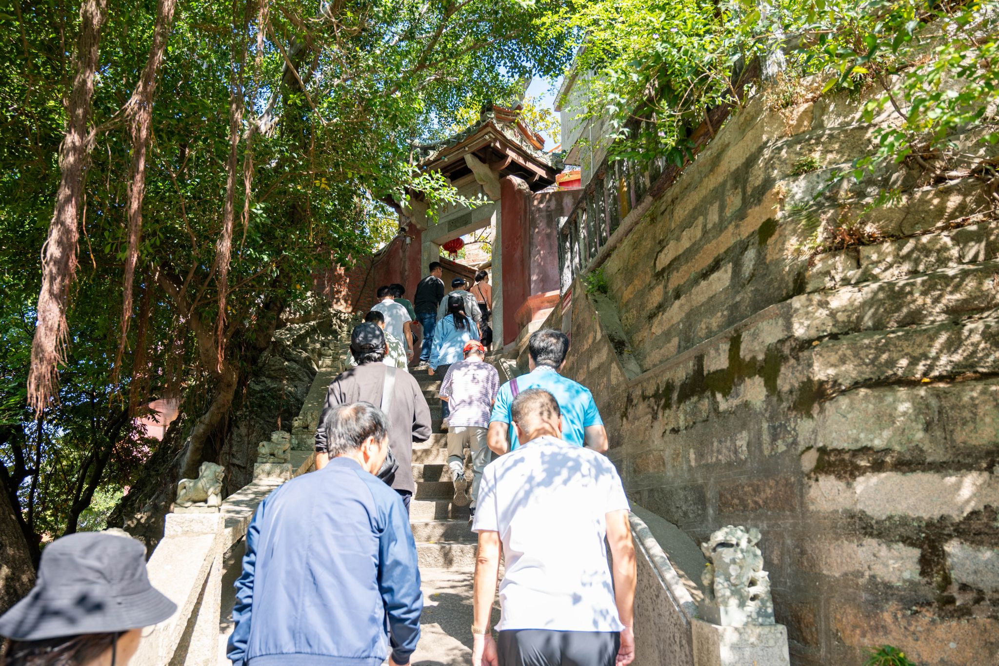 首站净峰寺,作为闽南千年古刹,背山面海的格局藏着“海丝佛国”的底蕴。重阳登高是自古延续的习俗,亦是我校重阳节活动的经典环节。登顶时恰逢晴日,古寺香火与海风交织,定格下老教师们登高赏景的温馨画面。