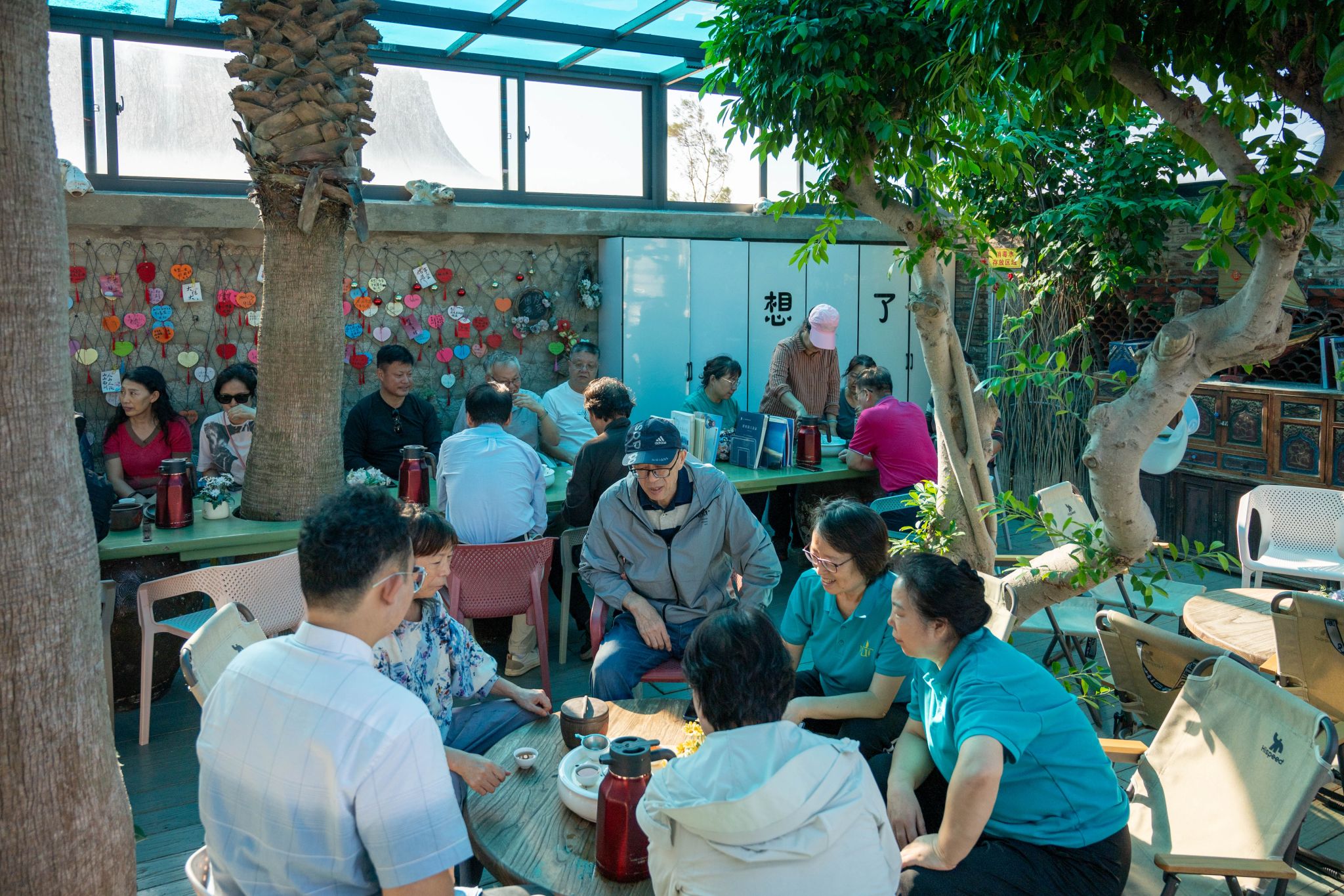 最后一站惠女风情园,老教师们走进海边特色茶厅,在欣赏夕阳海景的同时,围桌品茶,谈笑风生,欢声笑语伴着海浪声,为研学之旅画上圆满句号。