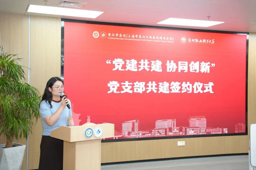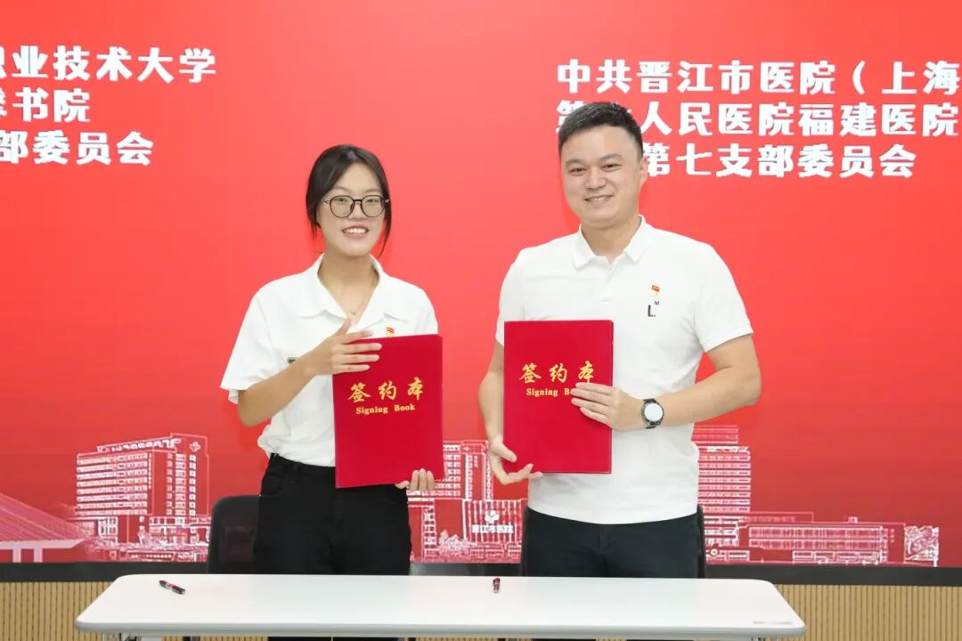 泉州职业技术大学党委副书记、副校长蔡金佩,晋江市医院(上海六院福建医院)党委副书记、纪委书记雷鸣等双方领导、党支部代表及志愿者代表共同出席了仪式,见证了这一重要时刻。
