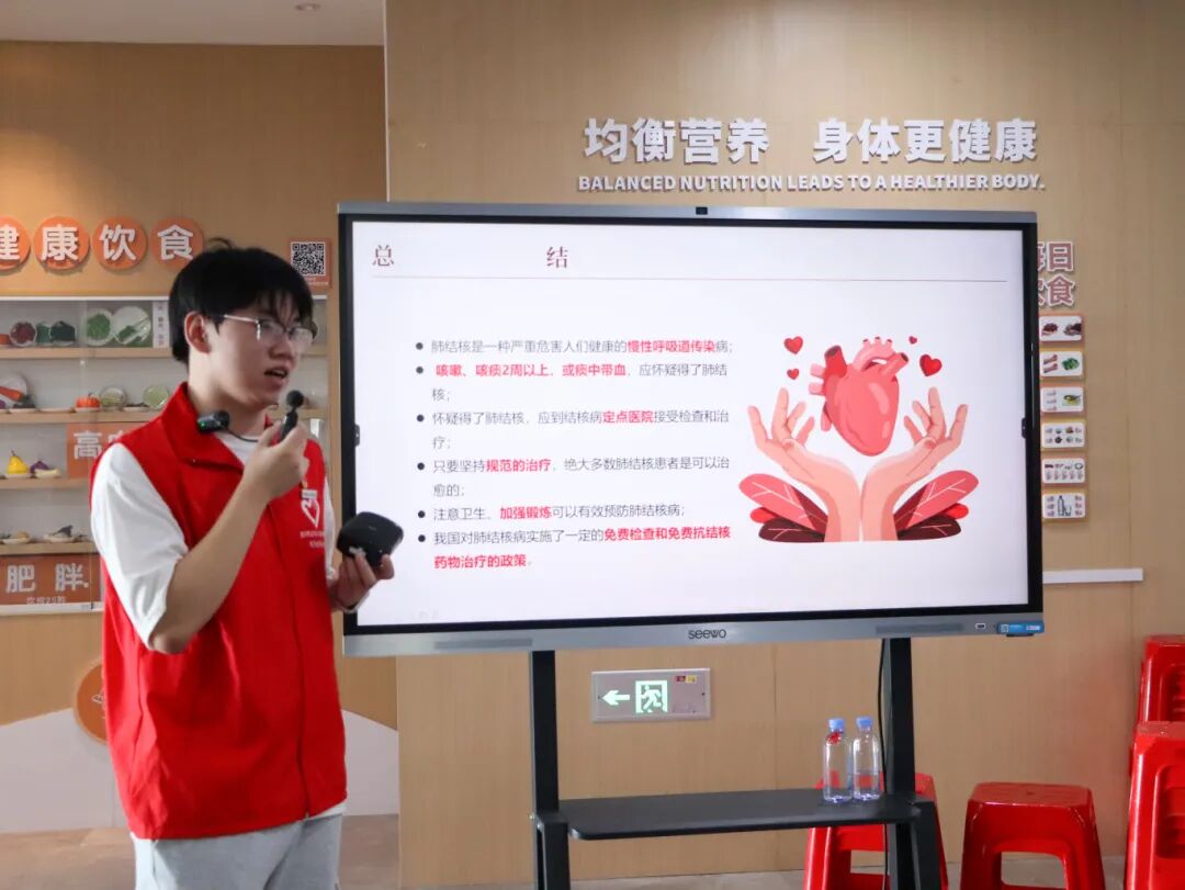 七色花童话屋里,志愿者与就诊小朋友们共同制作小风车;儿科病房里,志愿者悉心教导患儿绘制非遗脸谱;健康管理中心内,肺结核宣讲团的志愿者们为公众普及疾病防控知识,现场互动热烈;眼科门诊区,志愿者们手把手指导每位患者就诊……这些瞬间,让医院的每一个角落充满青春的温度。