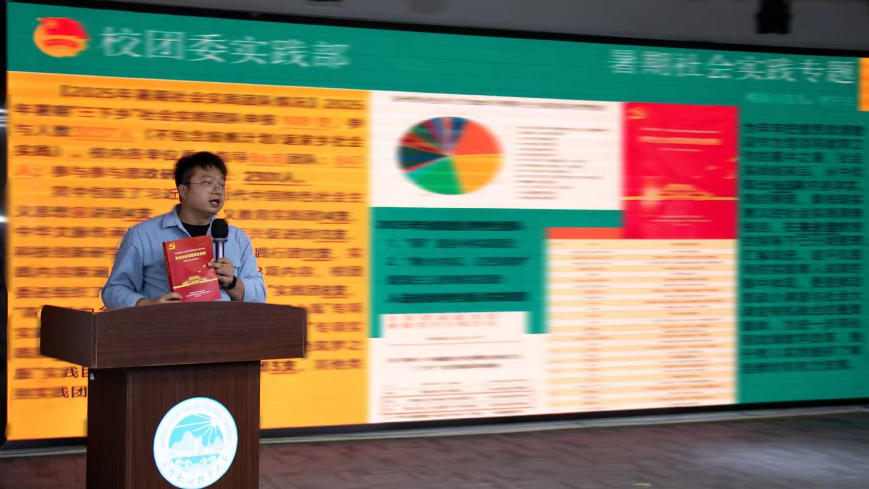 会议伊始,校团委副书记曾子石介绍了2025年暑期社会实践总体情况。本年度共组建108支实践团队,其中省级重点团队2支,校级重点团队86支,参与师生达3037人。活动同步征集了30支重点团队的展板材料,集中呈现了暑期实践的丰硕成果。