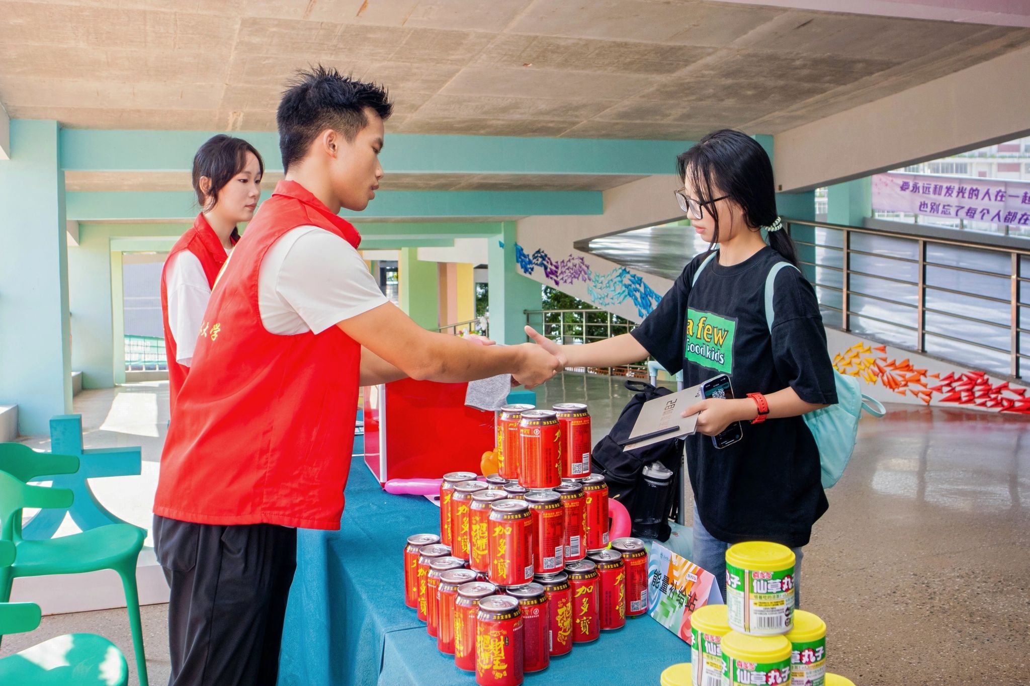 旁边的抽奖活动,有个奖品小巧而精致。“这是一个小书签,里面装裱着胶片,记录着学校各处的风景。”许培鑫将书签举起,阳光下,胶片显现出校园的美丽风景,到处绿树成荫、郁郁葱葱,“这能让新生在胶片里,看见美美的校园。”