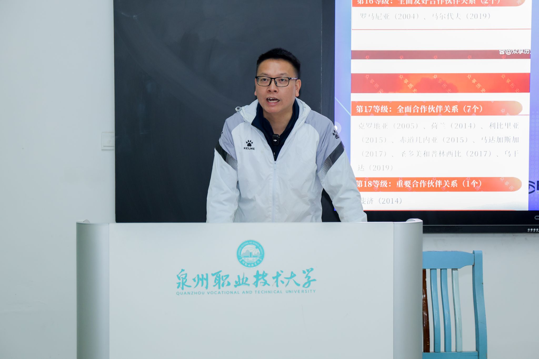 为拓宽学生国际视野,增强时代责任与担当意识,1月6日上午,副校长林文艺面向2025级休闲体育1-2班学生,讲授了题为《携手周边国家 共创美好未来》的思政课。课程通过理论与实例结合的方式,深入解读了周边合作的内涵及其教育意义。