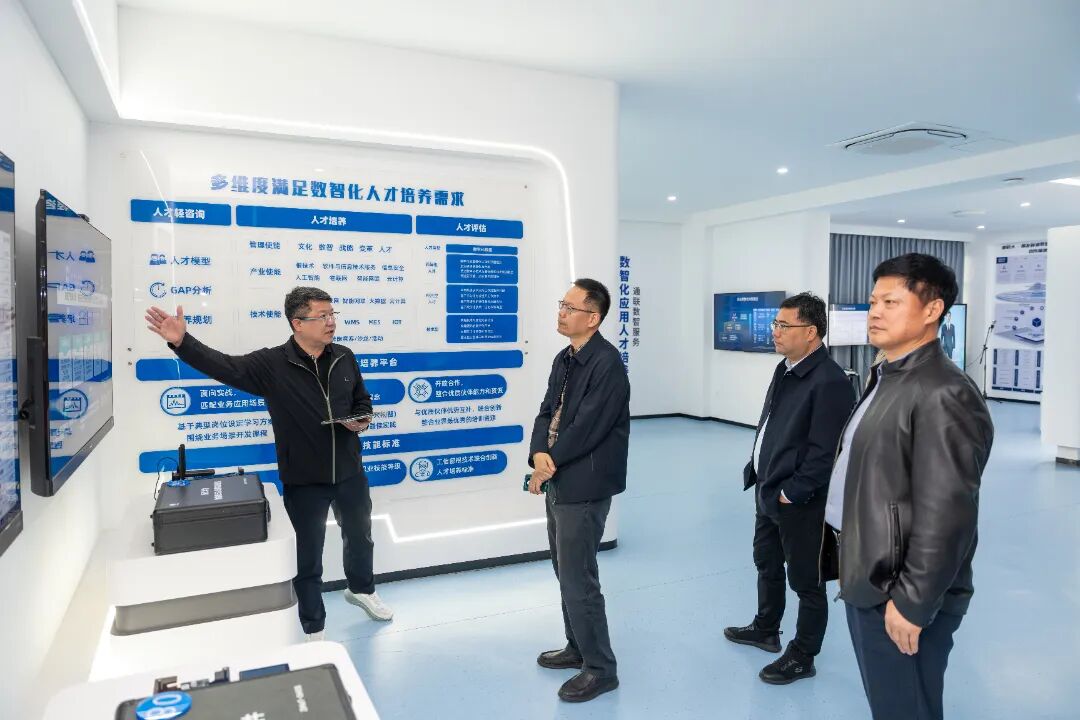 在校长吴滨如、副校长张建军、副校长郭霏霏、校长助理/教务处处长苏康敏的陪同下,张惠强一行实地走访了校园沙盘、校史馆、数智产教融合展厅、能源学院、行云新能源产业学院等教学科研场所。校领导重点介绍了学校的历史沿革、专业群布局、双高建设成效、数智化人才培养以及学校与龙头企业的深度合作情况,重点阐述了“产业伙伴型大学”办学定位下产教融合的实践路径。校领导表示,学校始终坚持以就业为导向,通过深化校企合作、精准对接产业需求,不断提升毕业生本地就业率,为区域经济发展提供坚实人才支撑。