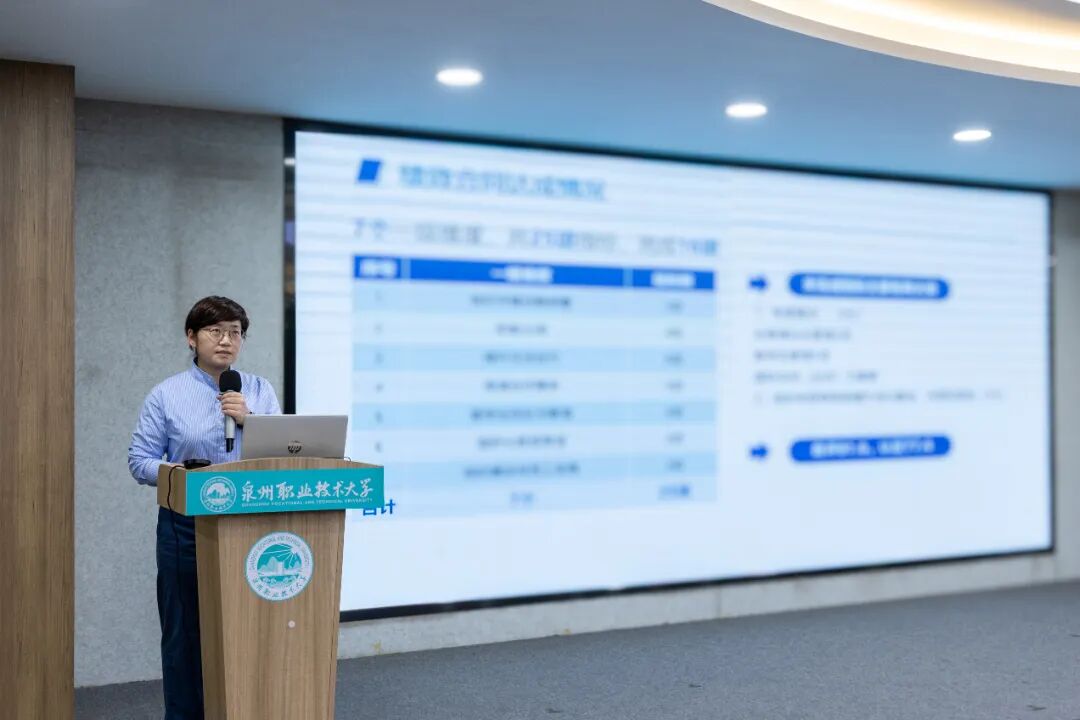 述职总结会上,吴滨如作《服务需求、深化产教城融合,提升关键办学能力》的主题报告,从“职业本科办学模式的思考”“产教城融合的探索与实践”“几点体会”三方面进行阐述,梳理学校扎根晋江、服务泉州、面向福建,主动对接服务区域产业发展和国家战略布局需求,围绕深化产教城融合,全速推进基于“产业伙伴型大学”和“市域产教联合体”双轮驱动的职业本科办学模式,推动学校高质量发展。她特别分享、解读了5个产教城融合的特色案例,分别是“以产定教”的省“双高”新一代信息技术专业群、“助产高端”的省“双高”智能装备制造专业群、“与产共荣”的国家“双高”电子商务专业群以及工艺美术专业群服务城市文旅产业、城市更新专业群服务未来城市建设,全面展示学校与城市、产业深度融合的实践探索及经验模式。