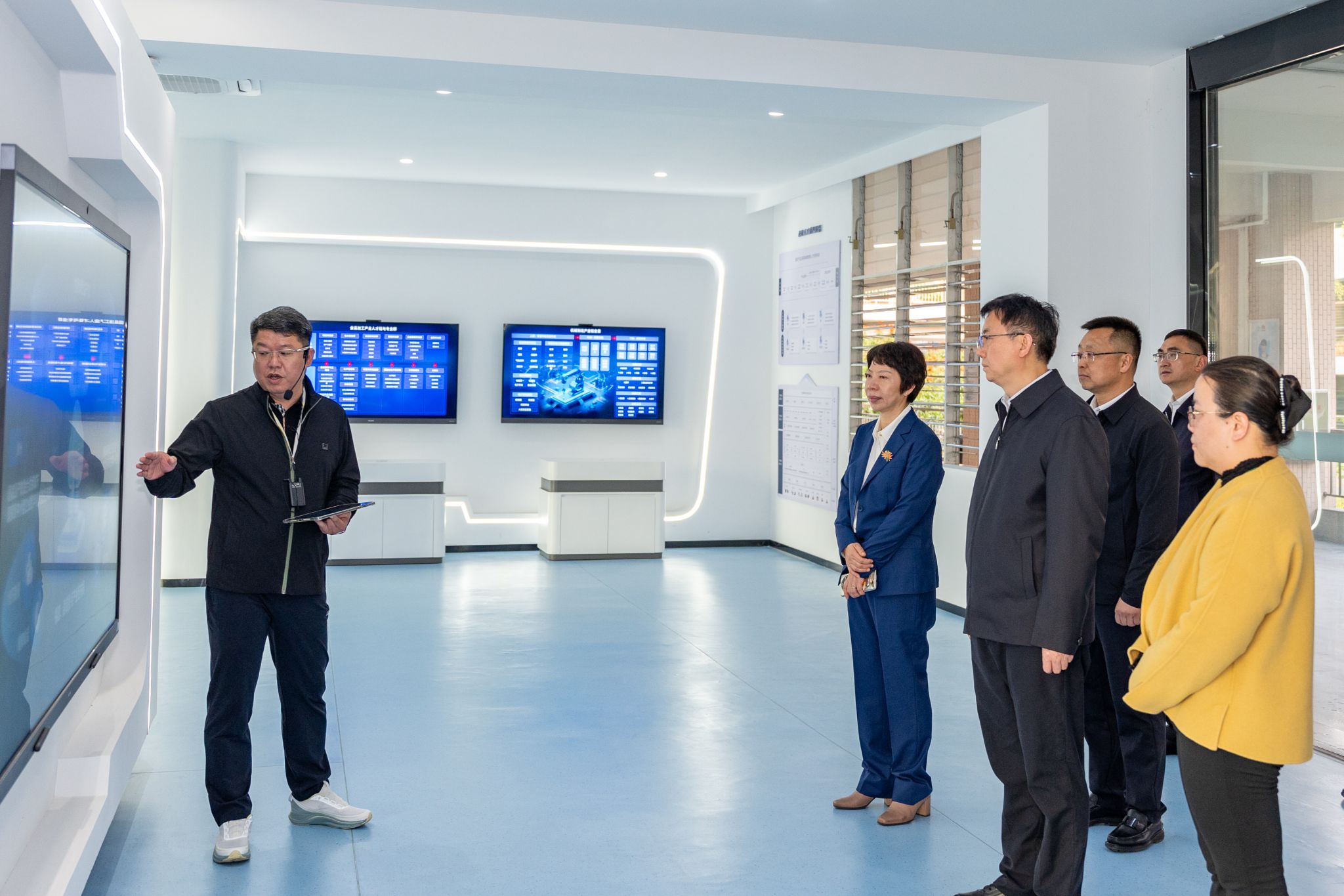 在我校校长吴滨如、党委书记傅志雄、副校长郭霏霏的陪同下,黄朝阳一行先后参观了生态校园沙盘、校史馆、艺术设计展厅、电商直播基地、数智产教融合展厅、行云新能源汽车产业学院及众创空间等教学科研场所。参观期间,学校领导围绕学校办学沿革、校企协同育人机制、双高专业群建设成效及数智化人才培养模式等方面作系统介绍。