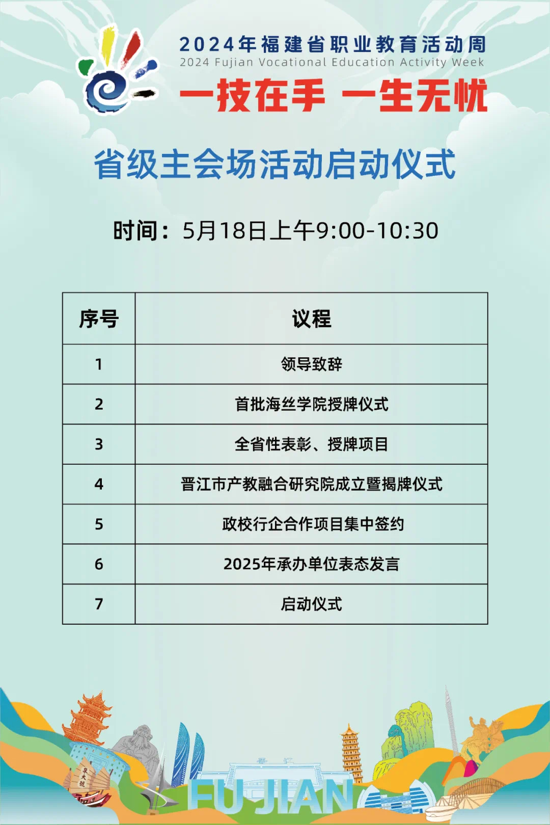 今年是职业教育活动周开展的第十年。明日,由福建省教育厅等省直10部门联合主办的2024年福建省职业教育活动周省级主会场活动将在晋江举行。今年职业教育活动周主题为“一技在手,一生无忧”。