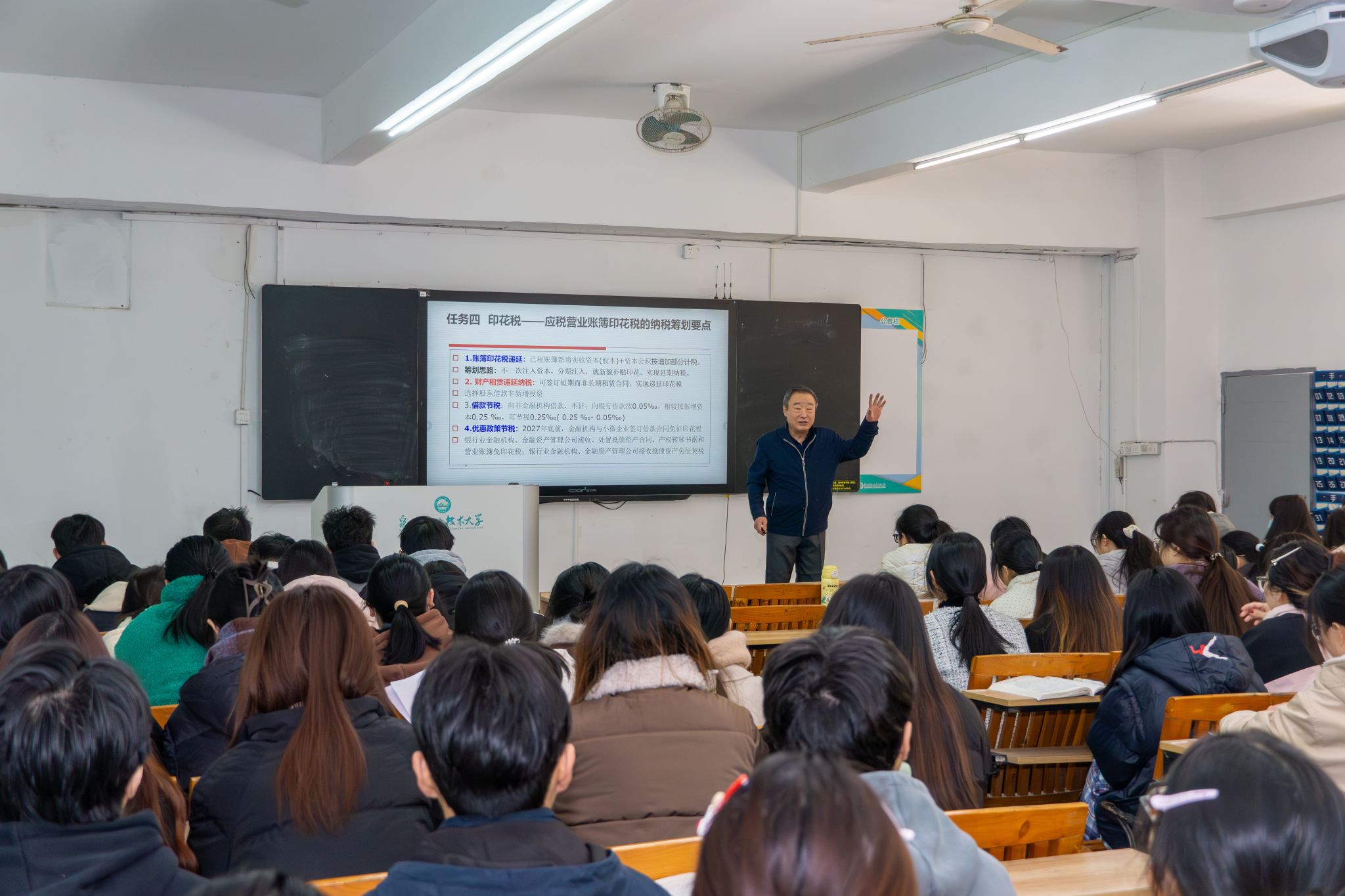 “王老师从不拘泥于教材,他总是能把抽象的税法条文,转化为鲜活的案例故事。”此前,听说税法课特别难,使2024级大数据与财务管理2班学生陈颖忐忑不安。而第一节《税法与纳税实务》上课时,王教授带来一本1998年的旧账簿,讲起自己帮乳品厂理账报税的经历。这一刻,陈颖感觉到,在王老师课堂,税法变得可以触摸,跟生活特别近。