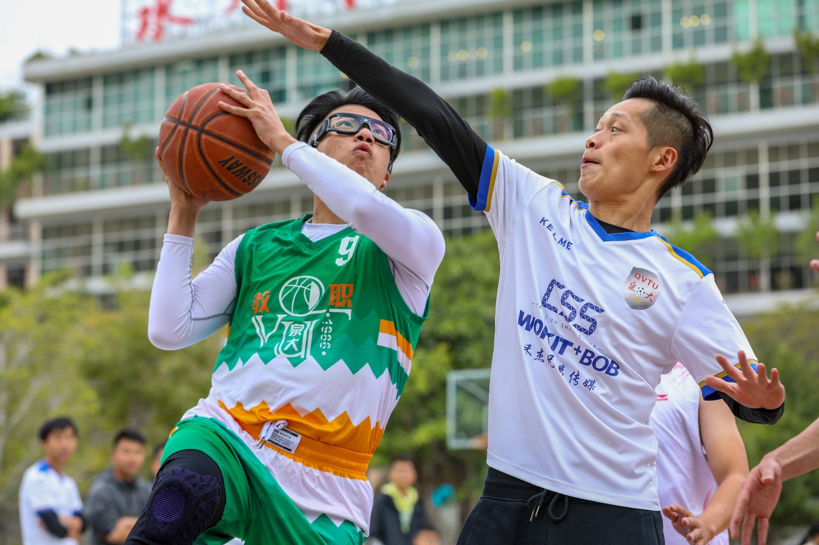 本次的校友&教工篮球对抗赛采用全场5V5的形式,参赛双方势均力敌,教工队不断利用掩护、跑位制造空位或错位机会形成优势单打,而校友队则多次打出精妙的传切配合。