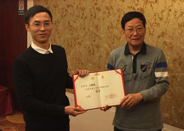 校友总会会长苏志明教授向宁德校友会会长颁发聘书