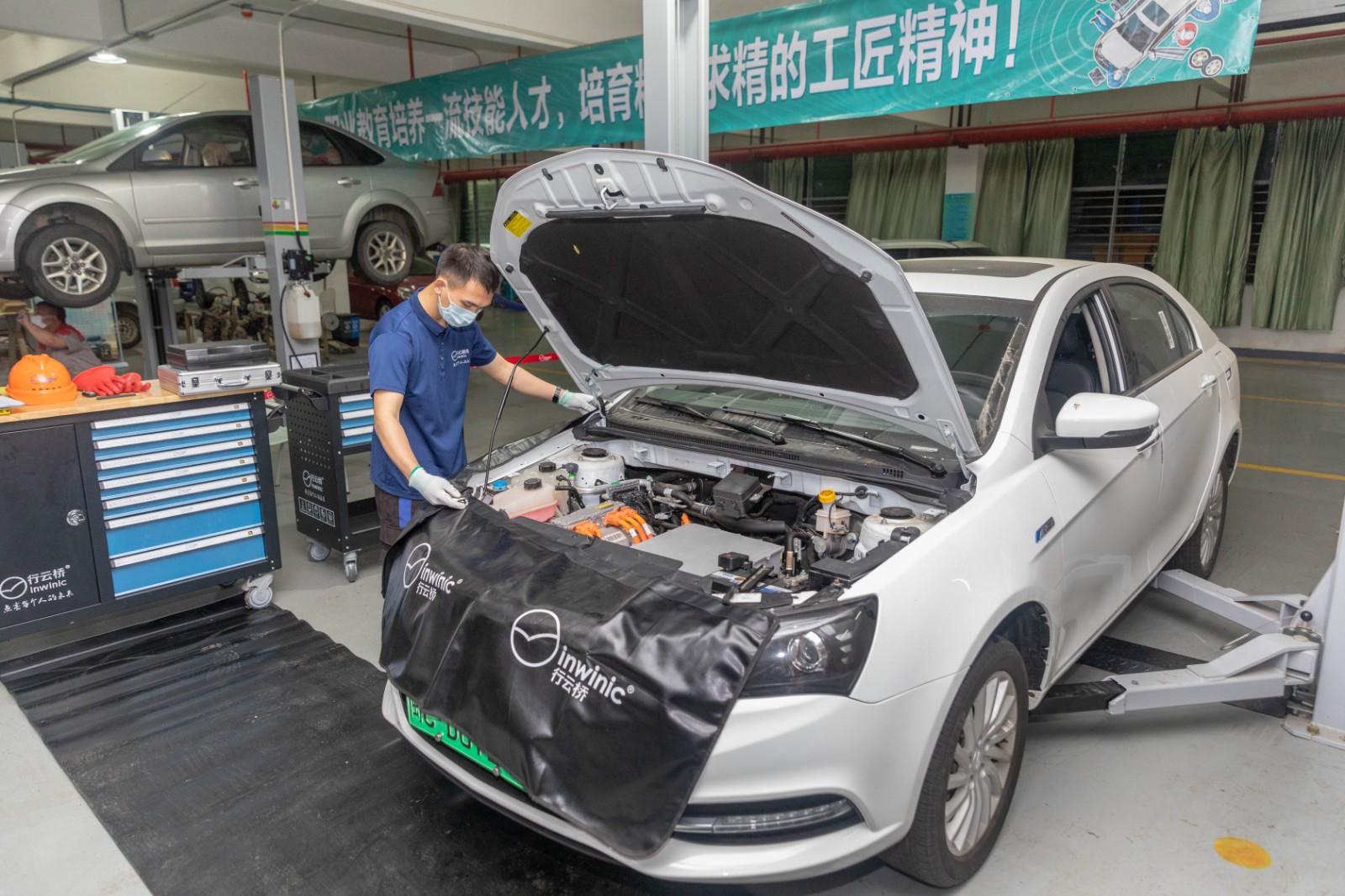 除了校级层面的活动外,我院也于5月12日-13日携手泉州市汽车产业工人技能培训基地、泉州市汽车后市场服务公共实训基地、泉大校工会、东风日产泉州汇京银河专营店、行云新能源汽车学院在汽车工程中心开展为在校教职工爱车进行免费检查,为他们的爱车保驾护航。参加本次活的有中营汽车学院赖景湖老师、黄绍金老师、陈辉老师、张进财老师,行云新能源汽车学院王海斌、邱瑞、吴振良以及东风日产泉州汇京银河专营店市场经理陈建华和企业的维修技师等。中营汽车学院汽车服务工程专业、新能源汽车专业部分学生在现场进行了观摩学习。通过职教周活动观摩学习,使学生贴近实际工作岗位,感受技能服务工作,创造价值的意义。“工作人员认真的工作态度、精湛的技艺,通过检查排除安全隐患,给车主带来安全,我想这就是技能让生活更美好。”2021级汽车服务工程技术专业2班的雷金墩同学如是说。