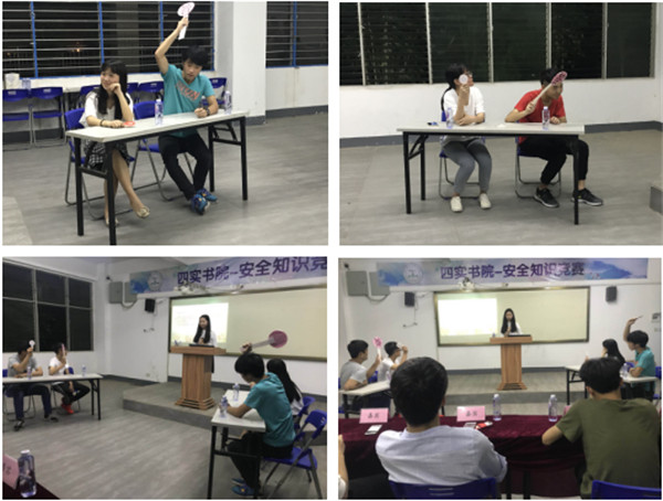 比赛过程中选手们屏息凝神,两眼注视着屏幕上的抢答题目,并以举抢答牌先后顺序进行抢答,答对一题加一分,答错一题的对方加一分;随着主持人倒计时话音刚落,双方选手几乎同时举起了抢答牌,有的选手抢答牌不小心滑落了,惹得现场观众哈哈大笑,比赛气氛时而紧张,时而欢快。紧张的是后面的观众也为选手们捏一把汗,希望他们都可以尽快抢答;欢快的是答错题目时选手们仰天长叹的姿势甚是滑稽。此次安全知识竞赛展示了当代大学生的活力,既可以加深同学们对安全知识的了解,增强理论知识运用于实际生活的能力;也丰富了同学们的大学生活,寓教于乐,与“律人律己,安全常伴”的安全主题相呼应,一起为四实书院软文化建设添砖加瓦。
