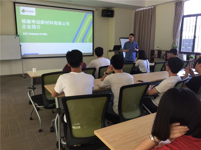 陈经理还介绍公司的企业文化管理的关键所在,申远秉承“无尽关爱、无处不在”的理念,致力于生产与研发高品质的己内酰胺与聚酰胺,是目前全球唯一一家能够形成最完整的锦纶生产研发的企业。同学们还就企业岗位需求、技术要求等相关问题进行了咨询。