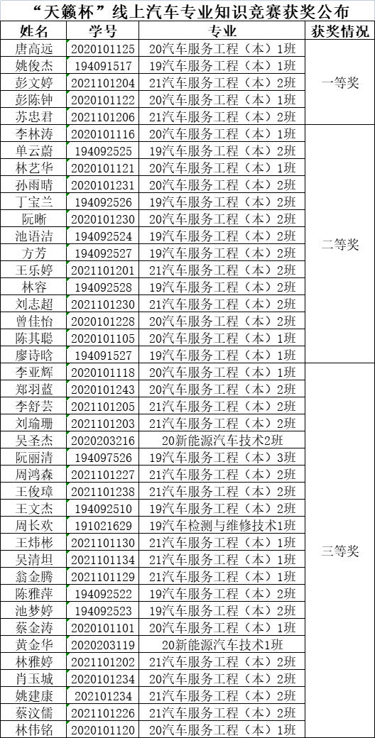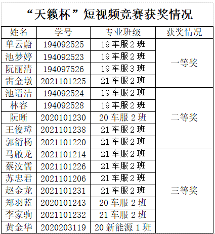 新颖的主题、有趣的活动形式,深深吸引了众多学生的参与。经过线上专业知识竞答、短视频制作评比,现将竞赛获奖名单公布如下: