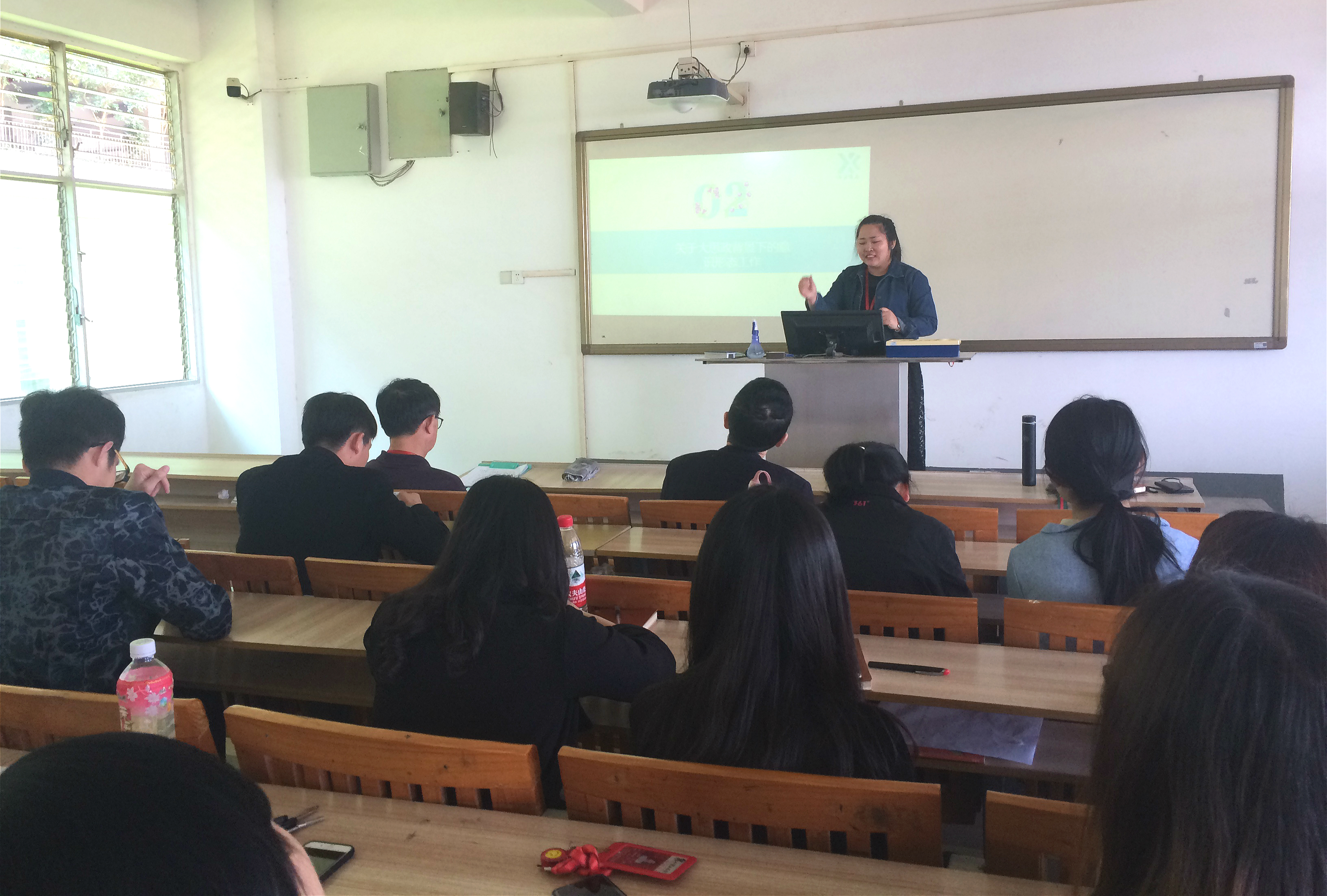 会议先由党支部王园园书记作关于高校思想政治工作辅导报告。她强调思政工作开展要多手抓,科任教师在课堂上要对学生做正确引导,注意言行以及政治立场,邀请校外专家开讲座要到学校报备,学校批准后方可进行。王书记还介绍了“活力信息”育人体系开展实践情况,后续工作需要各位老师积极配合。