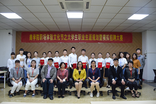 4月26日,由商学院团总支主办的大学生职业生涯规划暨模拟招聘大赛决赛在第二会议室举行。比赛邀请到石狮爱乐皇冠假日酒店人力资源总监梁智女士、泉州理工人事处招聘专员林翠云老师、商学院人力资源管理专业主任张友香老师、商学院人力资源管理专业老师沈雪容老师担任评委。石狮爱乐皇冠假日酒店招聘主管高德顺先生、商学院学生会指导老师张明娟老师出席本场比赛。