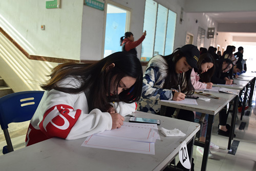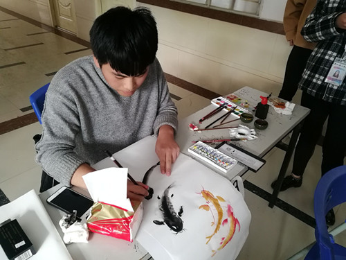 比赛一开始,各组的选手们很快进入自我书法的状态:硬笔书法首选钢笔,选手们下笔如有神,字字有力道,笔分到位;毛笔字,古有王羲之入木三分,今有商学院学生泼墨成书,选手运笔到位,手法自如;绘画组的选手也不甘示弱,传统水墨画、现代素描等,画像栩栩如生。
