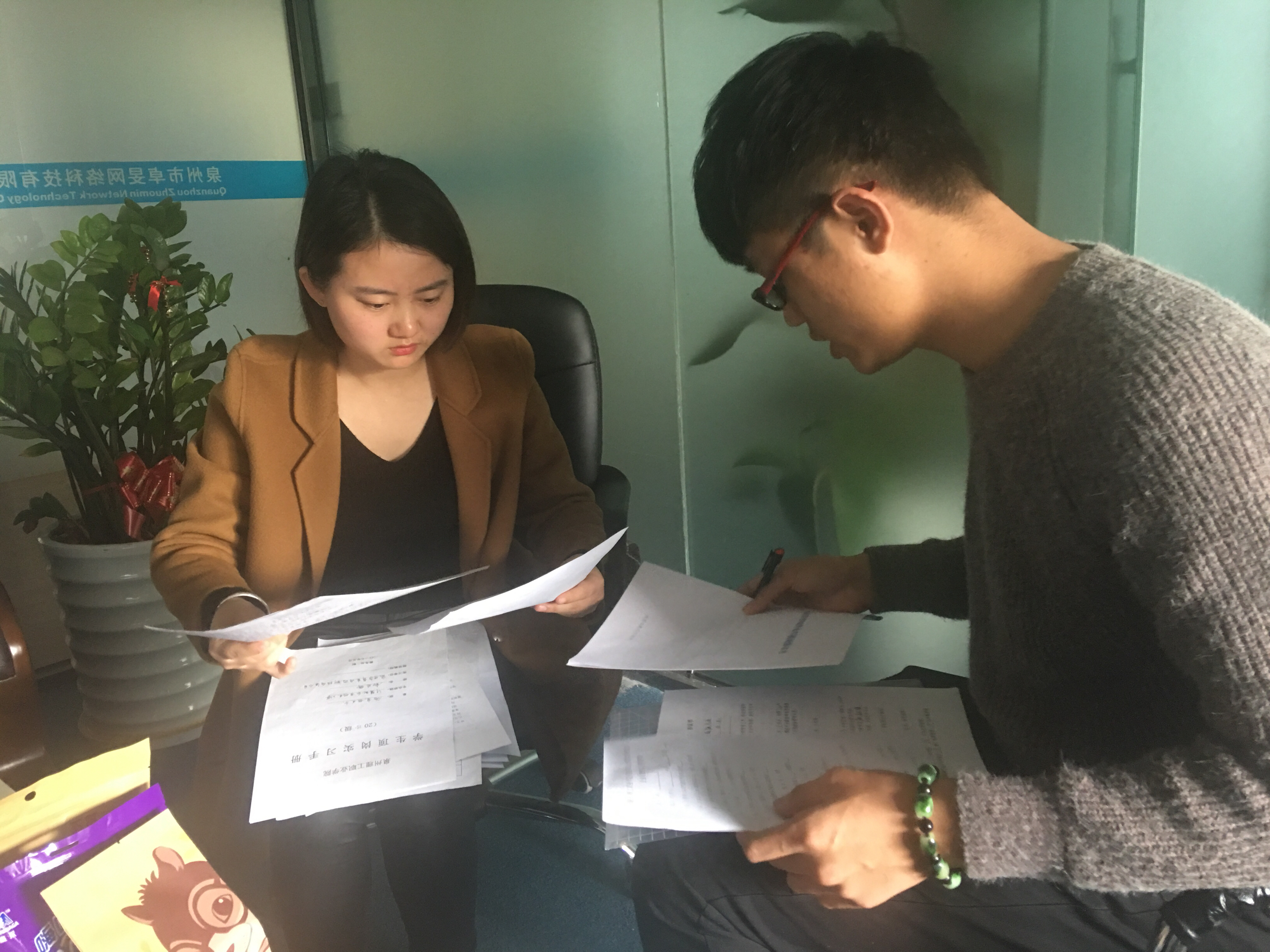 为提高人才培养质量,加强对顶岗实习学生的管理工作,12月26日下午,信息系主任张冲杰、信息系书记王园园、信息系辅导员梁敏敏一行3人,走访了泉州煜耀信息科技有限公司、卓旻网络科技有限公司等两家校外实习企业,看望了在两家企业顶岗实习的2015级学生,详细了解、检查信息系顶岗实习的具体情况。