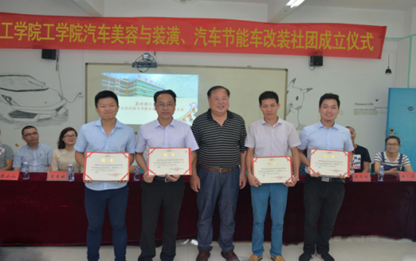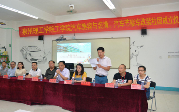 6月6日,我校在工学院卓越技师实验班举行工学院汽车美容与装潢、汽车节能车改造社团成立仪式。